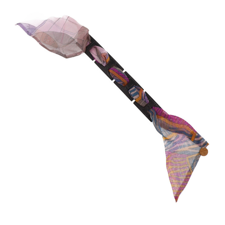 > 新品未使用展示品 エルメス リボン ブレスレット プティアッシュ アリゲーター シルク ブラウン系 パープル系 マル【本物保証】