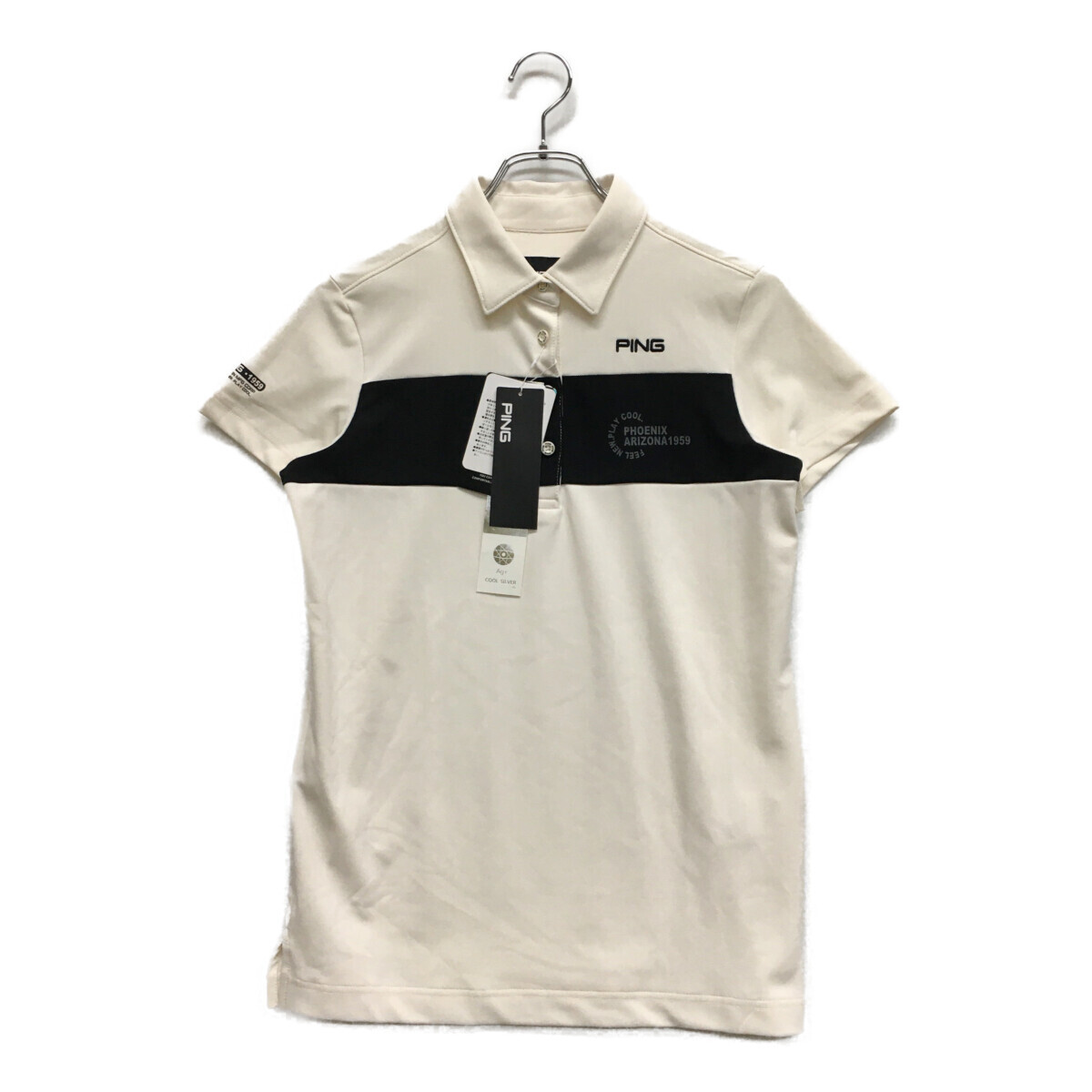 > coco 未使用品【値下げ】 ピン PING 半袖ポロシャツ M 白×黒 ホワイト バイカラー 2023年モデル レディース ネコパケ発送可 97193