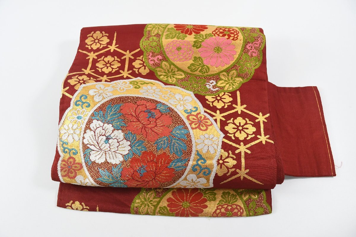 - 名古屋帯 アンティーク 花 菊 帯丈326cm ★着物屋 ne-15421 桜庭呉服店