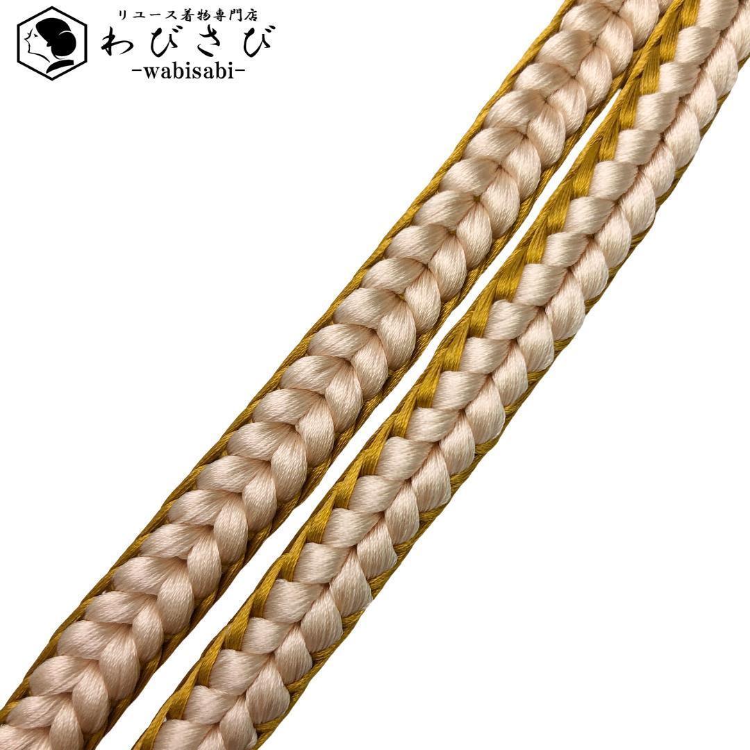 - 和装小物 帯締め 正絹 平組紐 組紐 乳白色 芥子色 C-5876 着物 きもの kimono 和服 和装 中古 リサイクル着物 【送料無料】