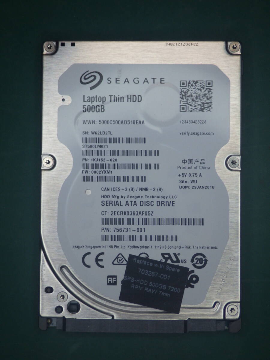 > Seagate 2.5インチHDD SATA ST500LM021-1KJ152 500GB 動作確認済(500031)