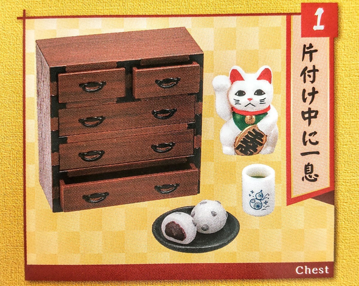 - 内袋未開封品 リーメント よきかな和の暮らし ①片付け中に一息 ぷちサンプル ミニチュア品