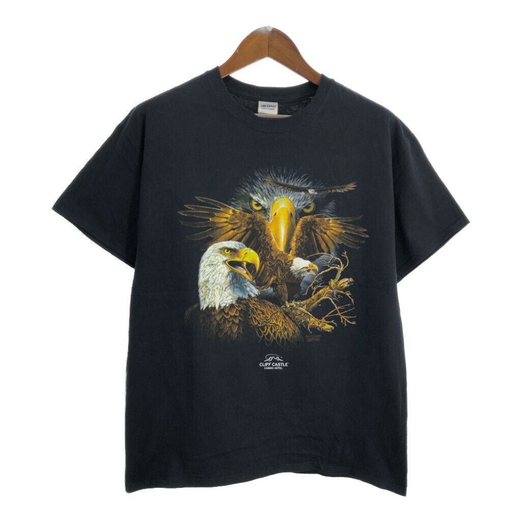 - アニマルプリント イーグル 半袖Tシャツ ブラック(メンズ L)中古 古着 U2739