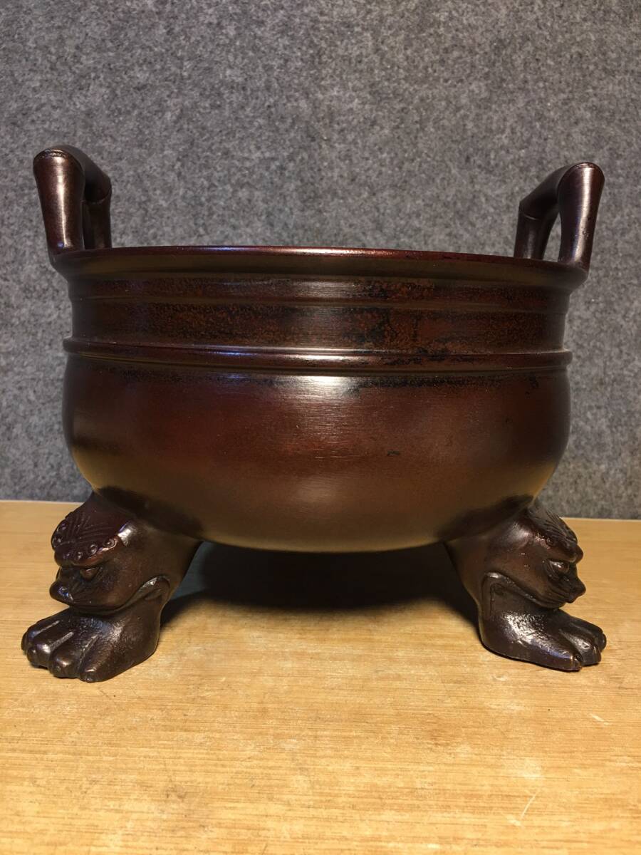 - ▽鴻▽ 銅製 雙耳 三足熏香炉 置物 賞物 古賞物 中国古玩 中国古美術