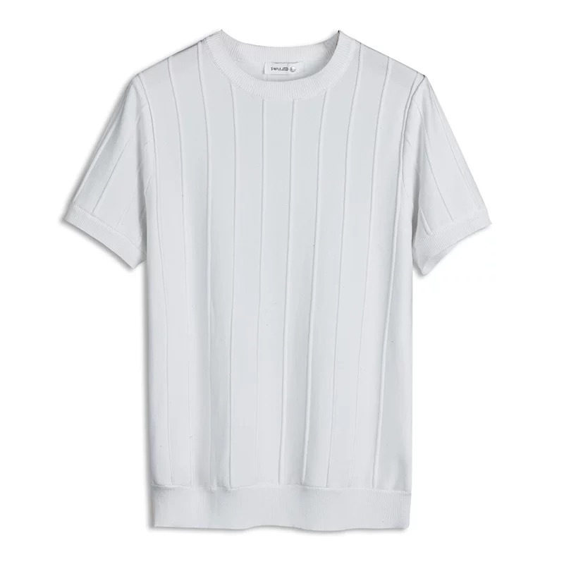 > 2XL 新品上質 涼しい 半袖ニット メンズ テンセル混 サマーニット 夏 薄手 ストレッチ 接触冷感 クルーネック ニットTシャツ/ホワイト