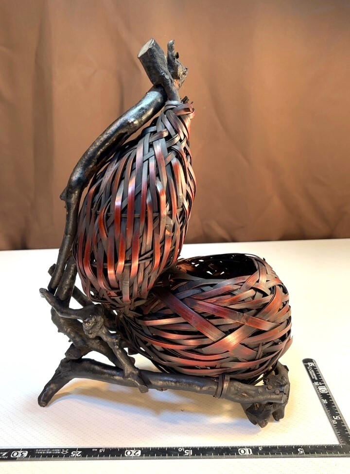 - ■47 ひょうたん型花かご 竹籠 花入れ 瓢箪飾り 古道具 置物 骨董 アンティーク 民藝 古民具