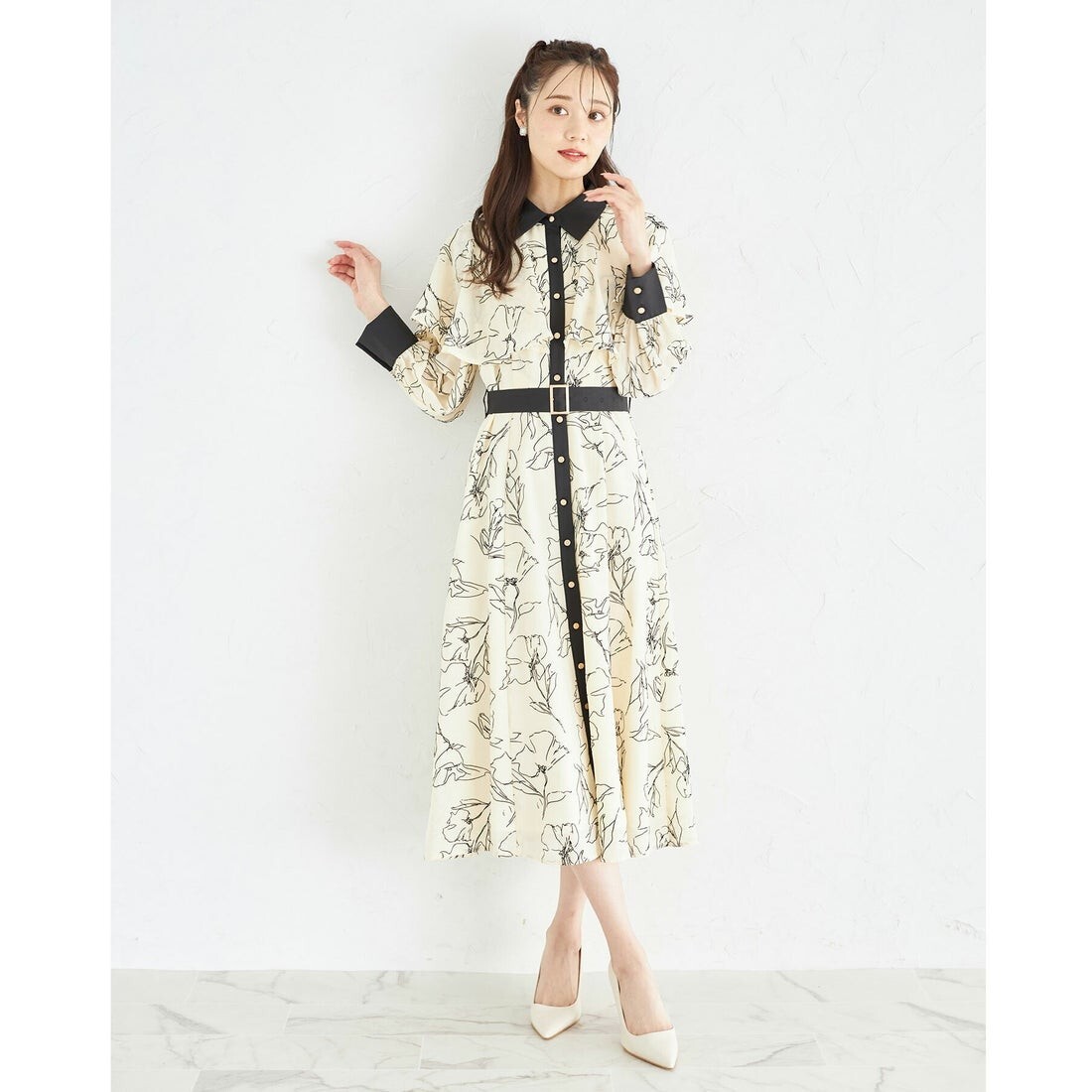 > 【送料無料・匿名配送】新品タグ付き トッコクローゼット ベルト付きフロッキーラインフラワーケープシャツワンピース アイボリー Mサイズ