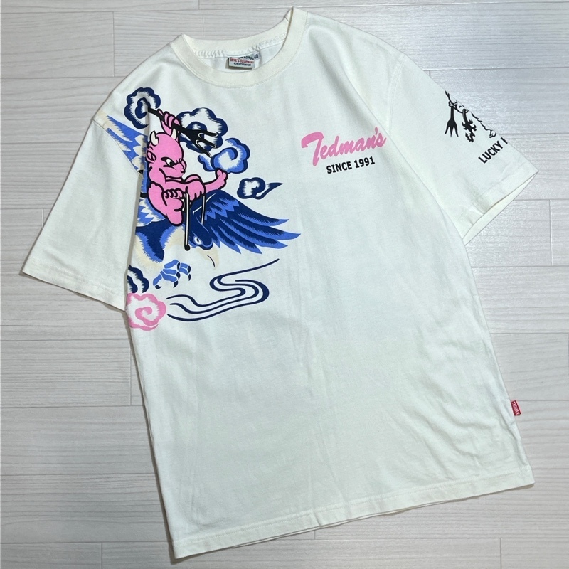 - Ted Company/テッドカンパニー/TEDMAN/テッドマン/LUCKY RED DEVIL/ラッキーレッドデビル/両面プリント/半袖Tシャツ/40/アイボリー