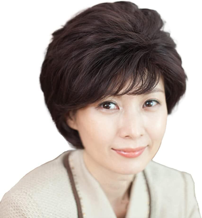 - 中高年フルウィッグ 医療用 wig レディース 手植え 人毛100% 女性用 カール パーマ ふんわり 脱毛用 白髪隠し (Black)
