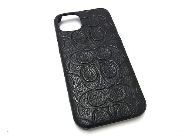 > ■極美品■ COACH コーチ シグネチャー レザー iPhone 14 Plus対応 アイフォンケース スマホケース ブラック系 BJ7188