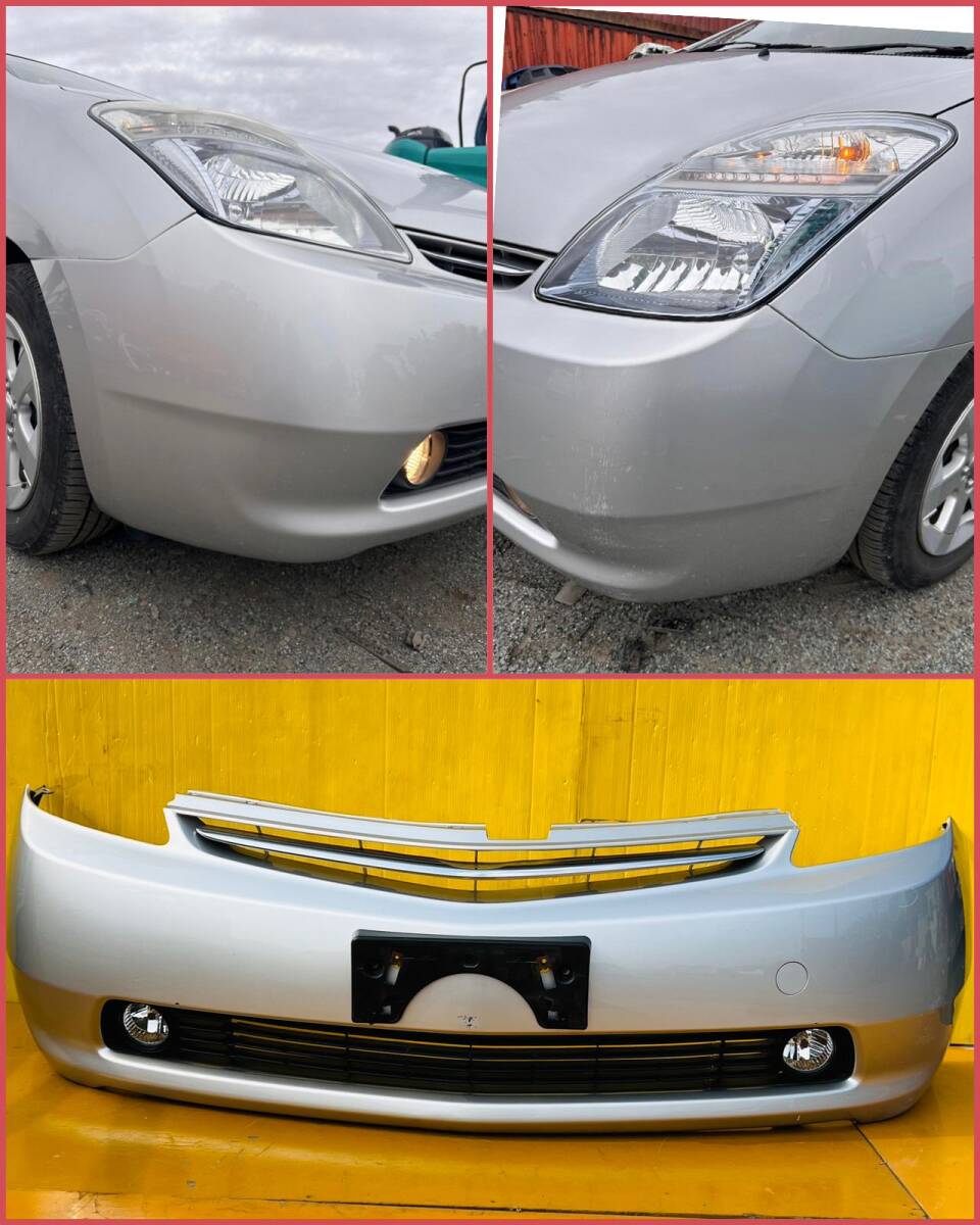 > ZT-3755]★送料無料★純正トヨタプリウス NHW20 H20年 フロントバンパー クロームガーニッシュ付き色:シルバー 1F7 引き取り限定で割引適用