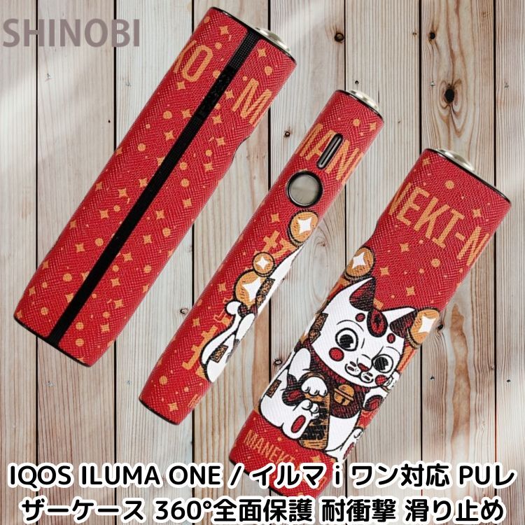 - IQOS ILUMA ONE / イルマ i ワン対応 PUレザーケース 360°全面保護 耐衝撃 滑り止め レッド招き猫
