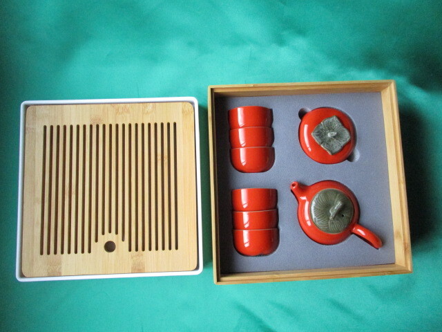 - 柿 かき形 急須 湯呑 茶器 8点セット 未使用品