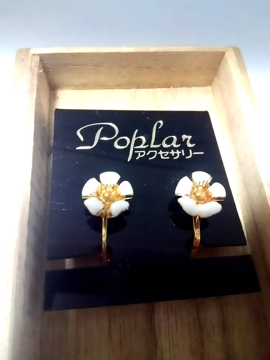 > 昭和レトロ 秋田銀線細工 竹谷本店 可愛い 花 イヤリング / 未使用 / カラー ( 白 金 ホワイト ゴールド ) / アクセサリー