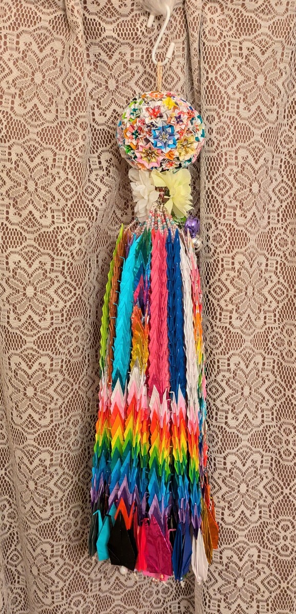 > カラフル系♪くす玉★千羽鶴★千羽鶴はカニカンフック着脱可~御鈴が3つ揺れて〜/ホイル綺麗★商売繁盛★願成就★縁起担ぎ★幸福★贈答品♪