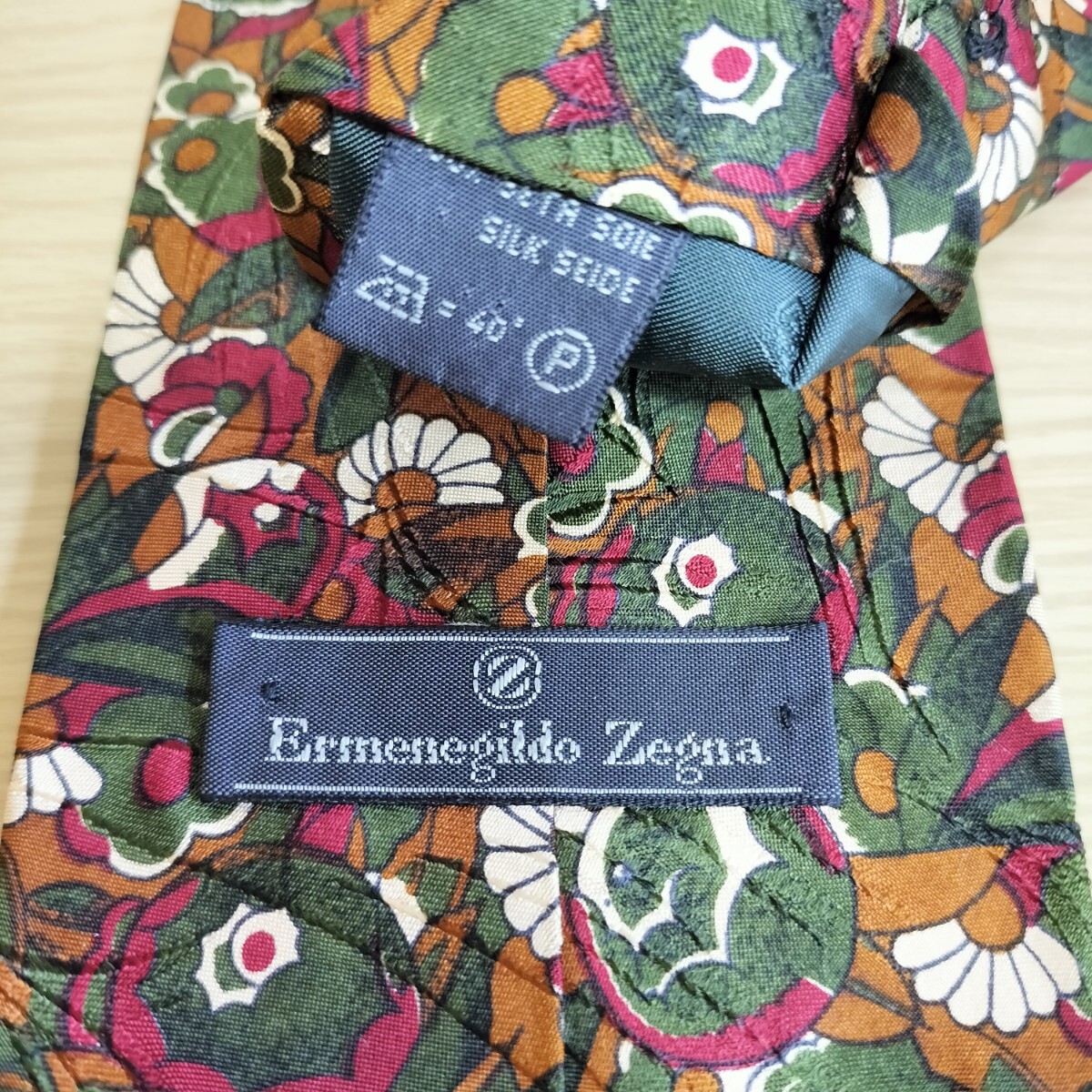 - エルメネジルドゼニア(Ermenegildo Zegna)緑茶葉っぱ模様ネクタイ