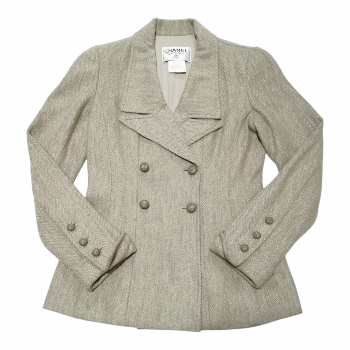 - レア 美品 vintage CHANEL 96A ダブル ヘリンボーン ジャケット カメリア ココマーク ボタン 10個 herringbone blazer jacket P08108V05030