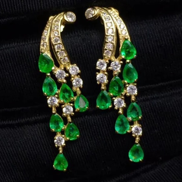 女性用天然グリーンエメラルドドロップピアス、ウェディングジュエリー、925スターリングシルバー
