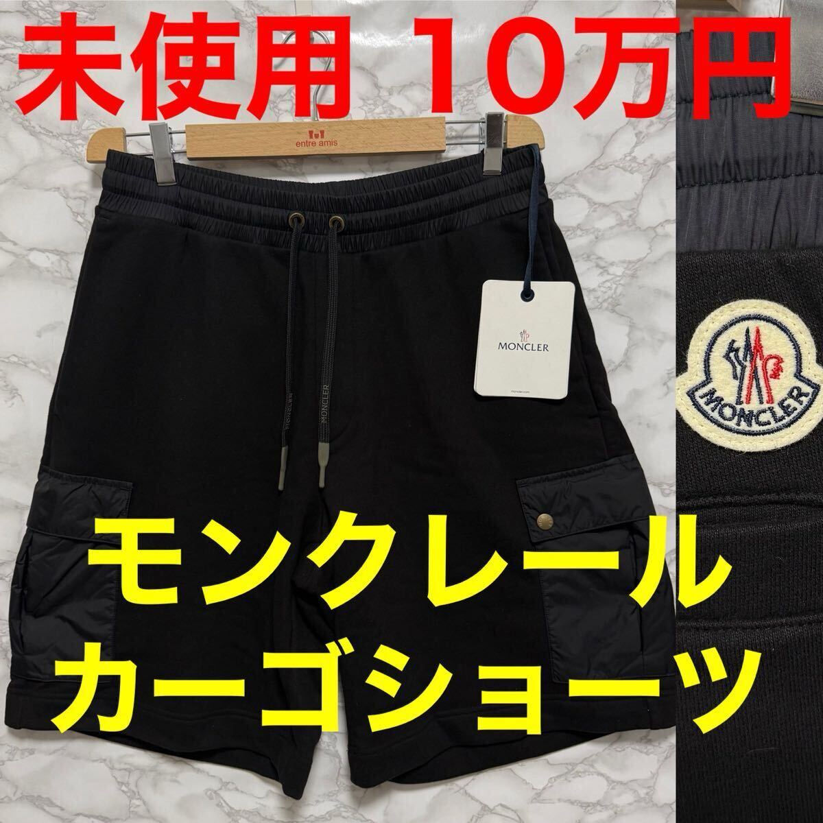 - Moncler モンクレール 未使用 カーゴショートパンツ ブラック 黒色 ポケット ロゴ 白色 バックロゴ サイズM