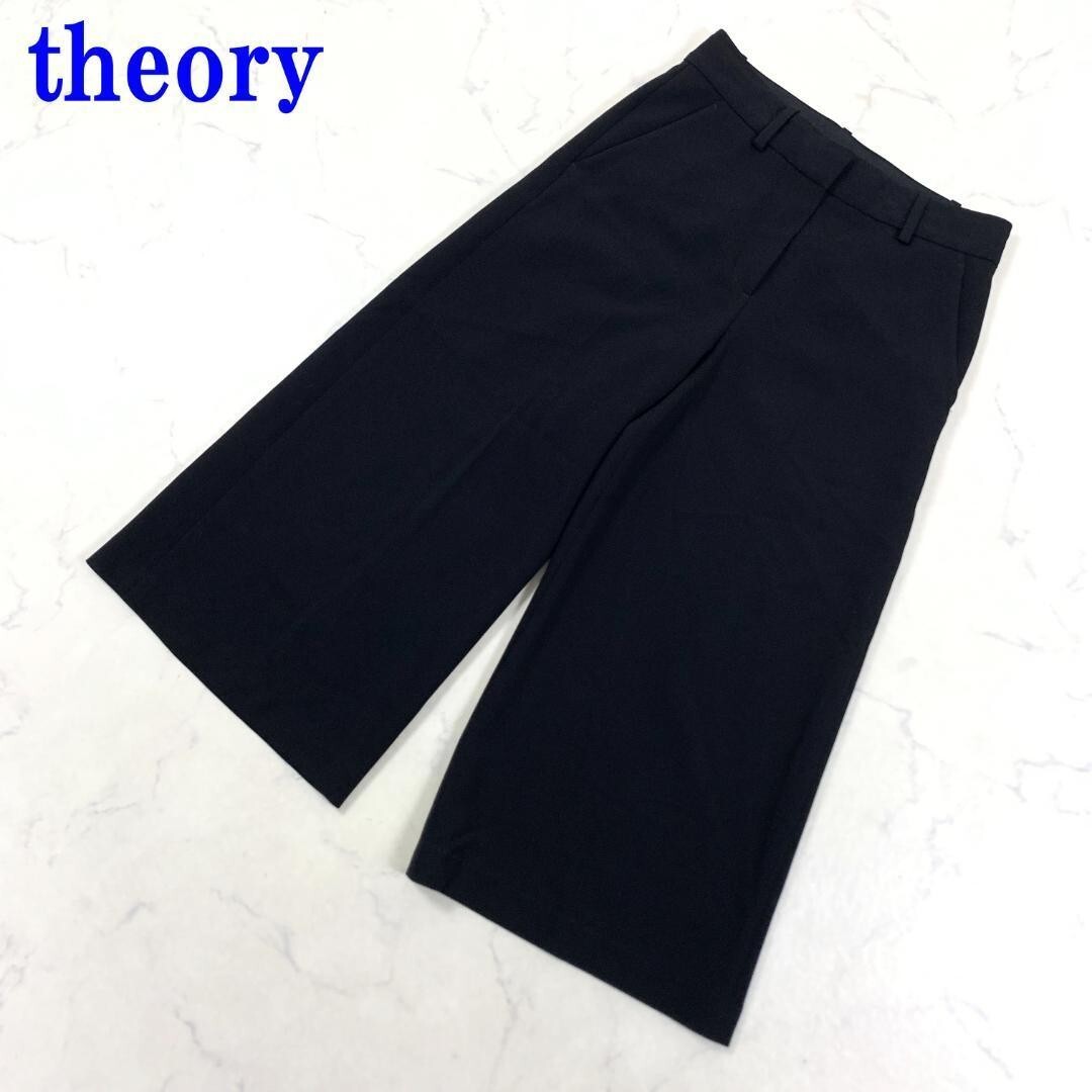 - セオリー ガウチョパンツ 黒 トリアセテート theory ブラック ハーフパンツ 七分丈パンツポリエステル XS C3054