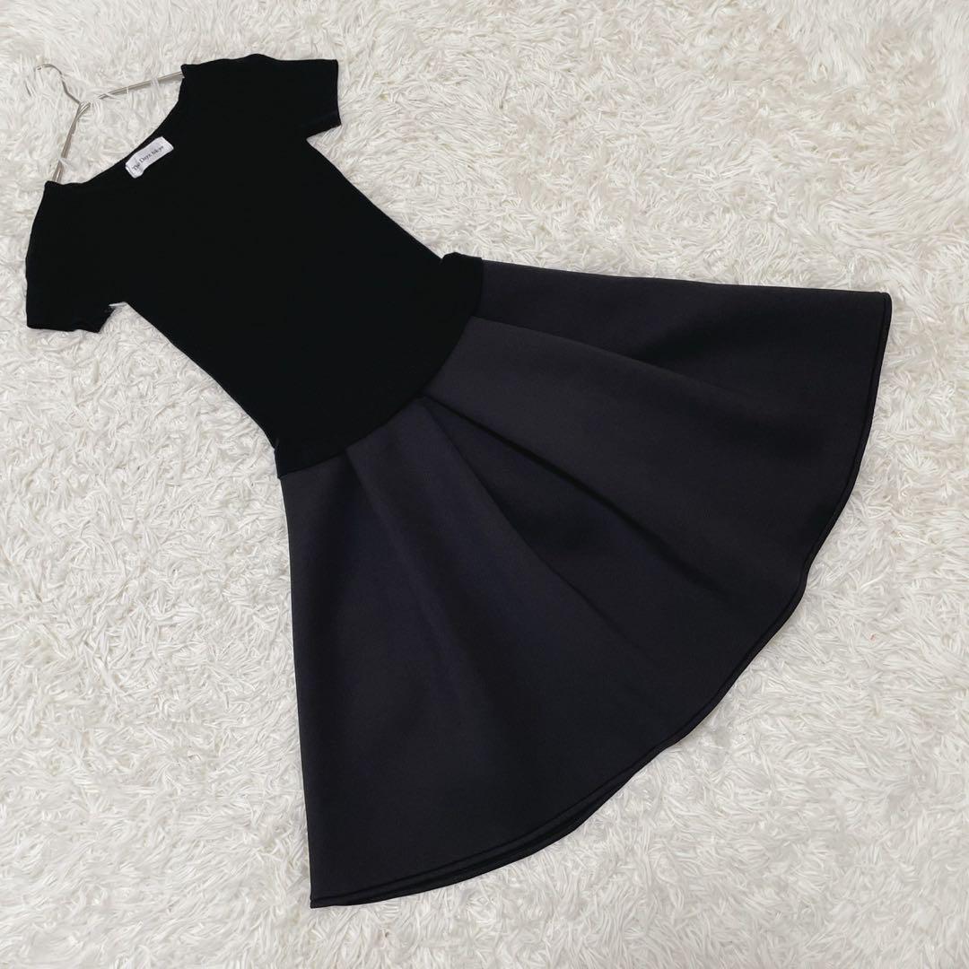 - ザデイズトウキョウ (36) ボックスプリーツ切替ニットワンピース フレア 半袖