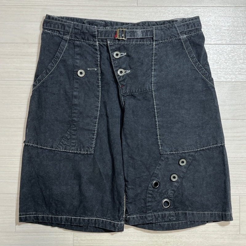 - TIGRE BROCANTE/ティグルブロカンテ/ドーナツボタン×鳩目デザイン/ウエストベルト/ショートパンツ/炭黒/ハーフパンツ