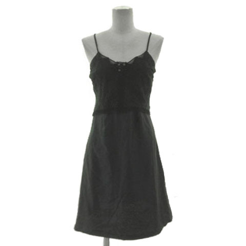 > 未使用品 レベッカテイラー rebecca taylor ワンピース 3685316 キャミワンピ ビジュー ひざ丈 レース シルク地切替え ブラック 黒 2