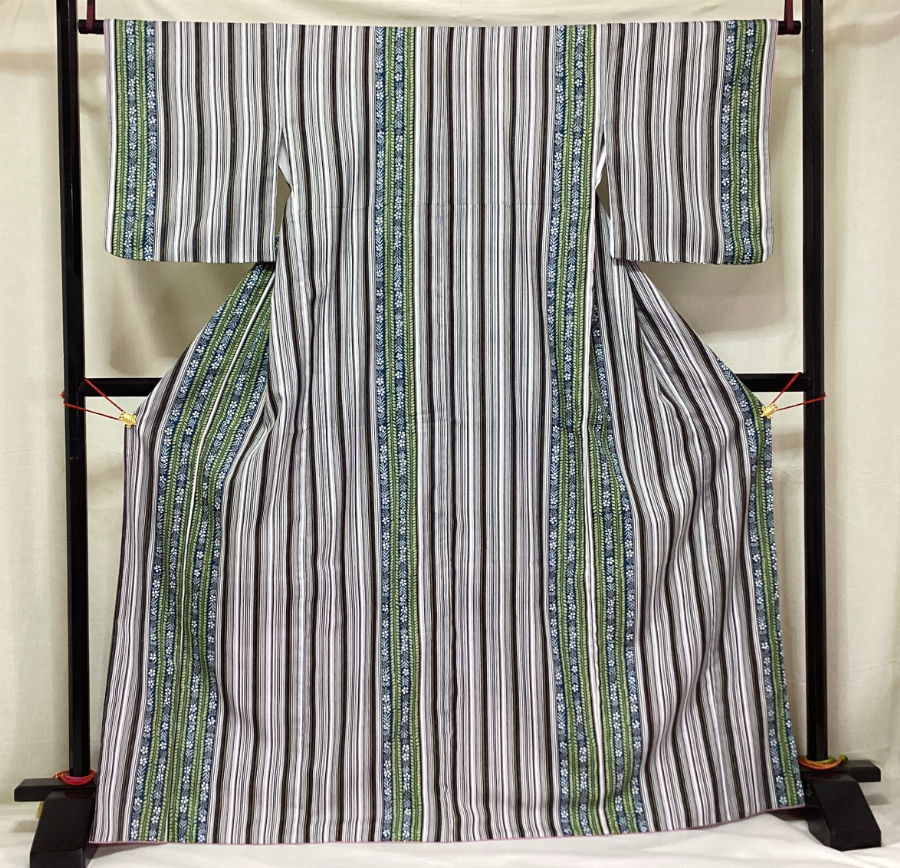 - 中古品 化繊 ポリエステル 袷きもの 小紋 洗える着物 M 25120 t