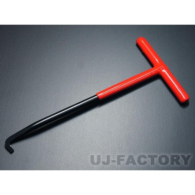 - ★プロ用 滑り止めゴム加工済!★T型スプリングフック レッド バネ外し バイクのサイドスタンド、マフラースプリング脱着に!