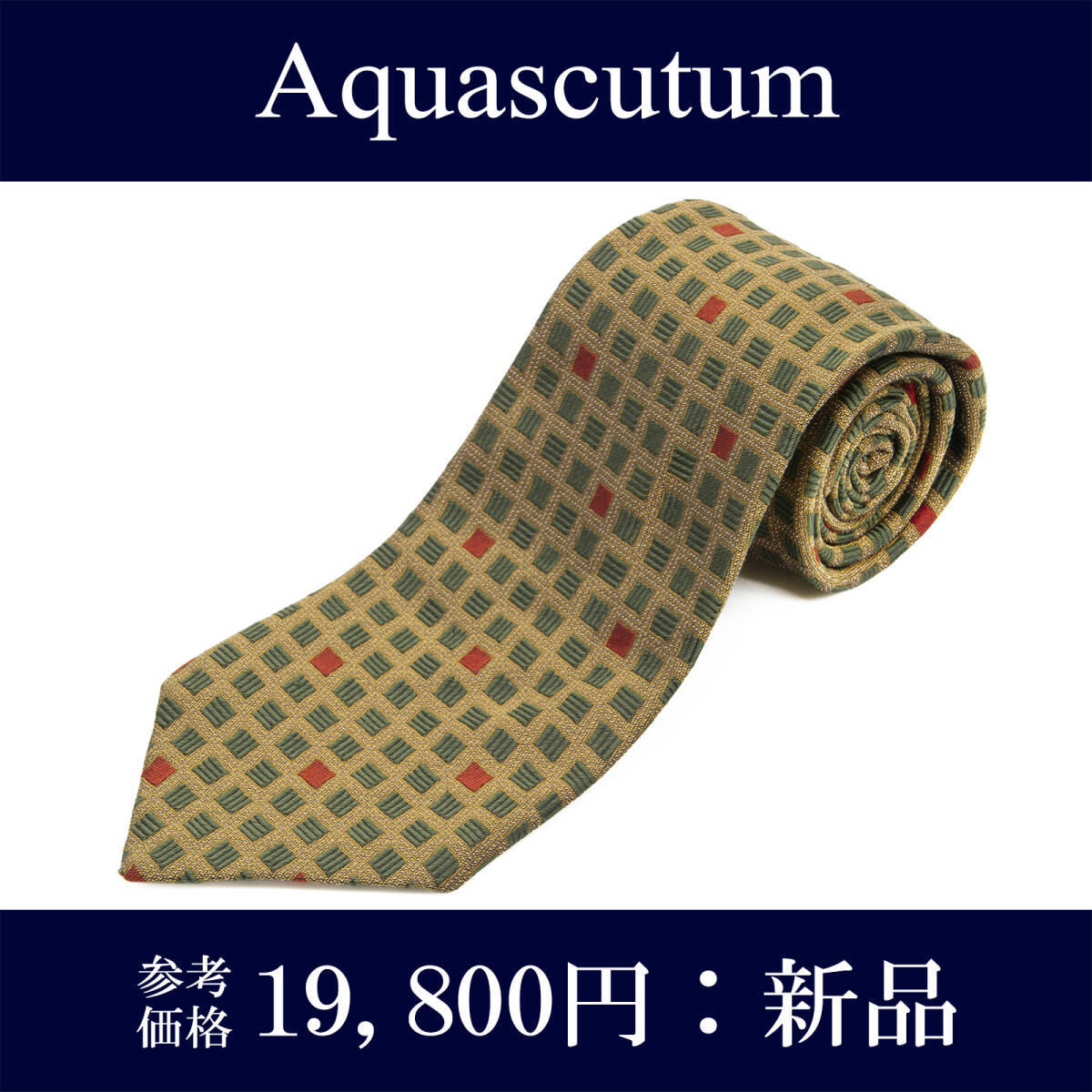 - 送料無料 アクアスキュータム ネクタイ ジャガード 新品 シルク ゴールド 緑 赤 ビジネス 四角 スクエア 光沢 目立つ ブランド 珍しい N888
