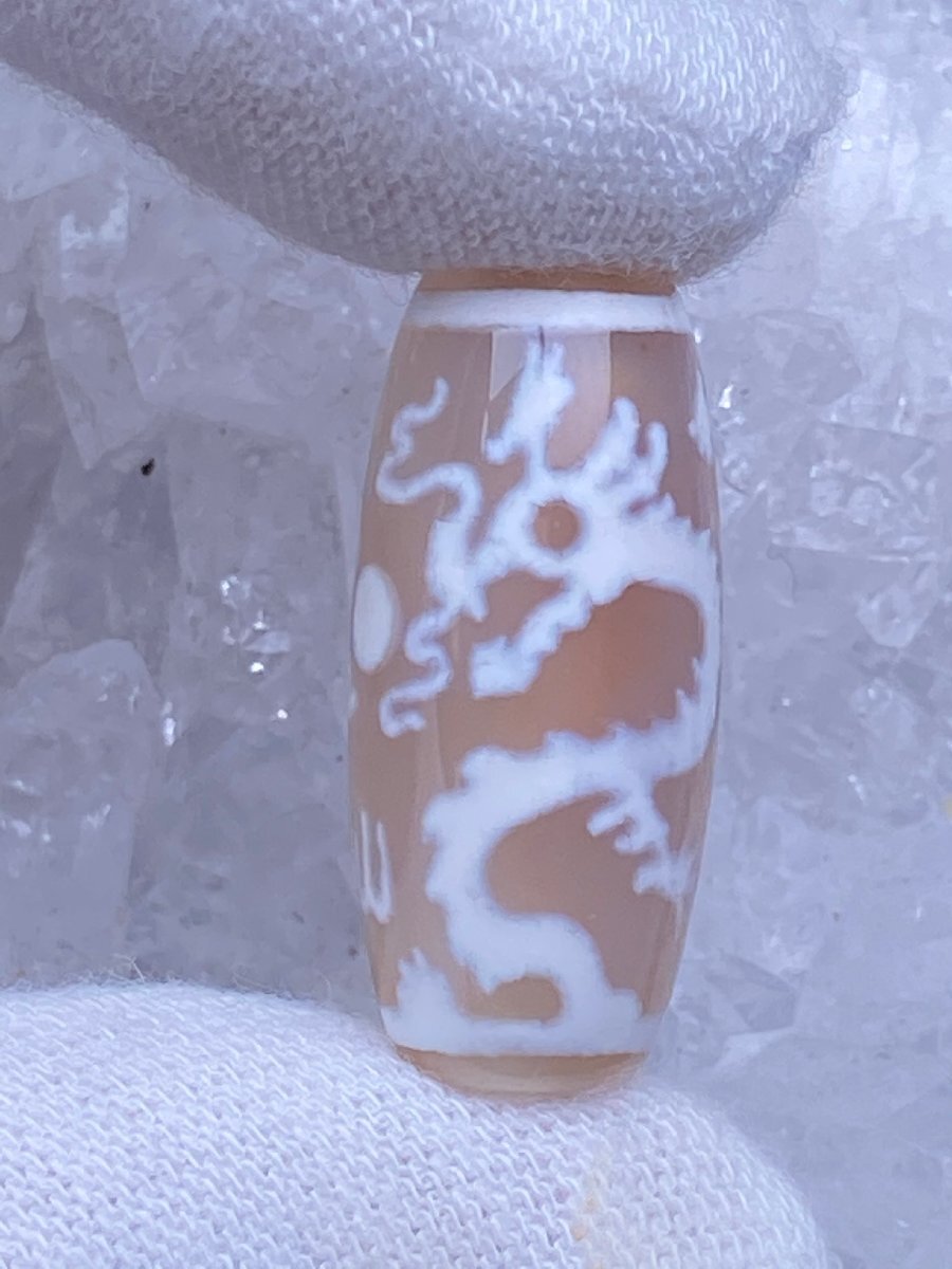 - 即決 0521e167 新入荷★【チベット老玉髄龍神天珠】★ 25x11mm(新品)