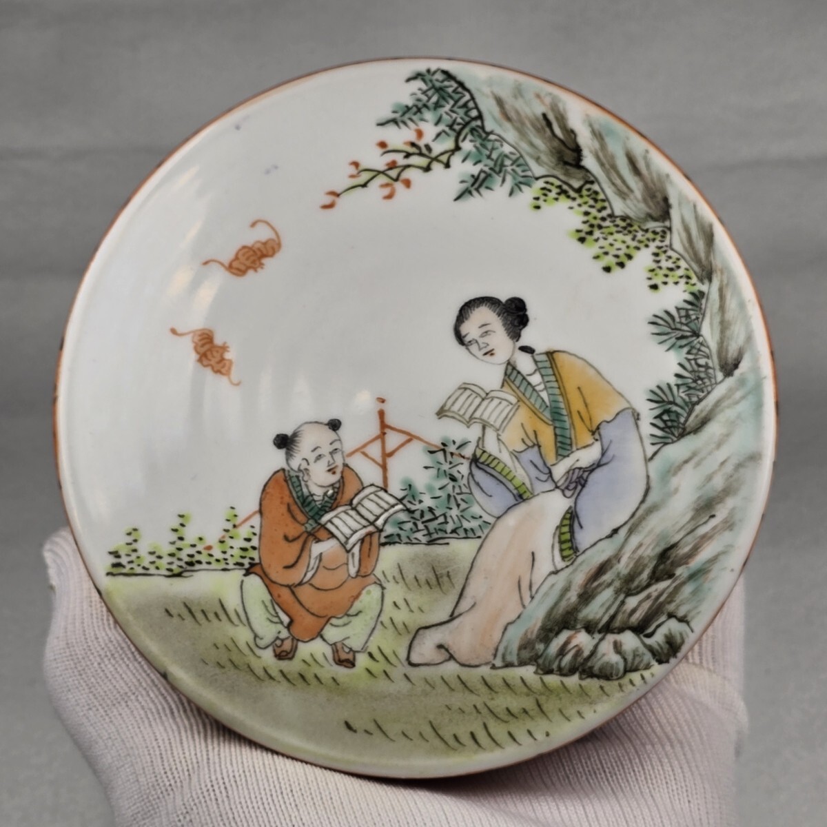 - 貴重 中国古美術 古磁 粉彩 手絵 描金 慈母教子図 手捧合 大香合 在銘