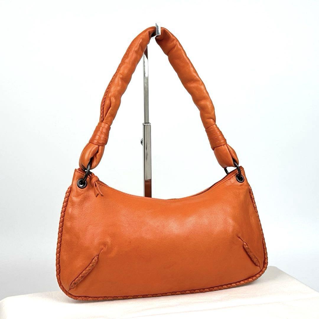 - 【美品】BOTTEGA VENETA ボッテガヴェネタ ワンショルダー 肩掛け イントレチャート 編み込み ハンドバッグ レザー オレンジ フォーマル