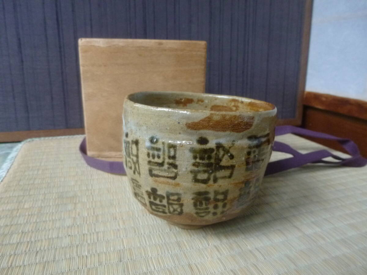 - 希少・米山焼福ノ字尽し筒茶碗・岡田米山人・合せ箱