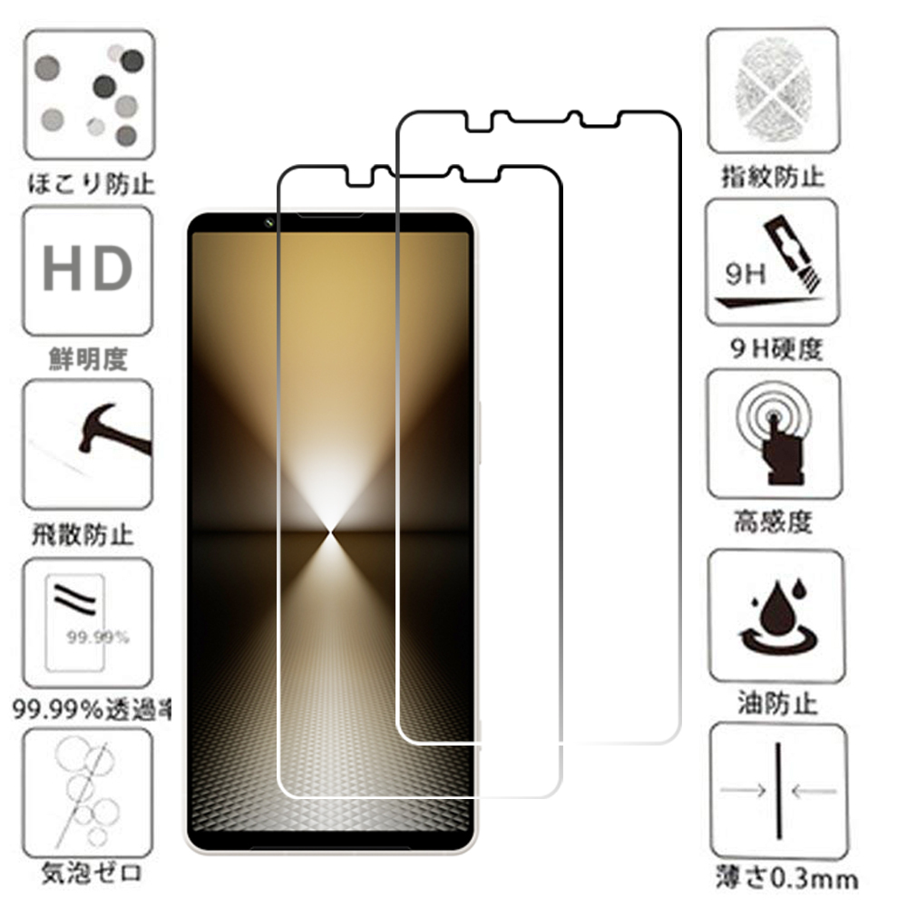 - 2枚入り Xperia 1 VII ガラス フィルム 画面 保護 SO-51F / SOG15 / XQ-FS44 1-7 カバー シール シート スクリーン Film 頑丈 9H ソニー