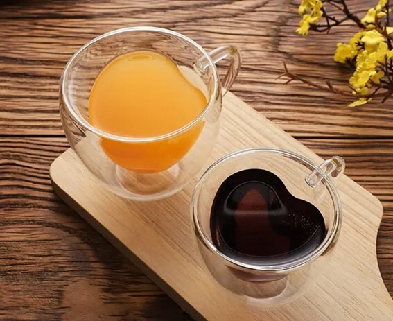 - 【ハート型マグカップ2個セット】ダブルウォールグラス 二重構造 プレゼントにもオススメ★