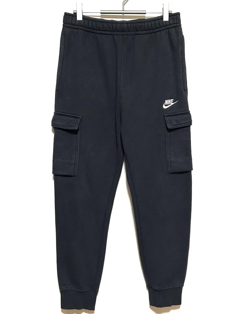 > NIKE クラブ カーゴ パンツ(M)黒 ナイキ NSW ジョガー スウェット テーパード 裾リブ ロンパン 裏起毛 フリース