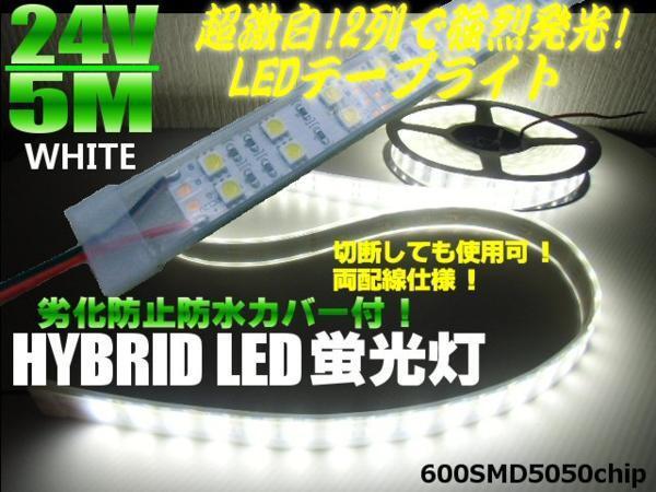 - 両配線 切断可 劣化防止 防水カバー付 LEDテープライト LED蛍光灯 24V 5M 白 ホワイト/航海灯 船舶 同梱無料 F