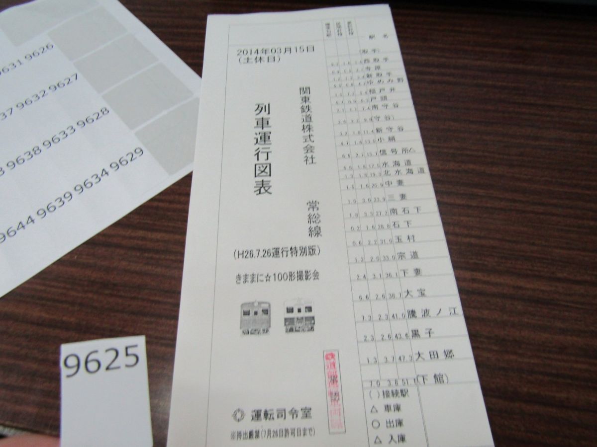 - 9625 AS 関東鉄道 常総線 列車運行図表 2014年3月15日 土休日 H26.7.26運行特別版 ダイヤグラム
