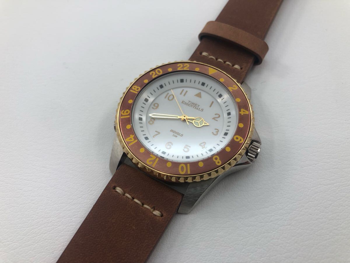 - 【稼働美品!!】タイメックス・エッセンシャルズ・インディグロ・コンビ・レザーベルト[TIMEX EssentialS QUARTZ]クォーツ式メンズ【中古】