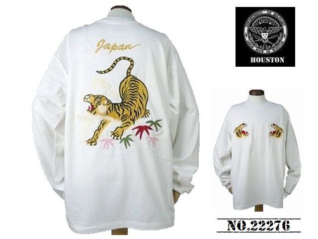 > 【送料無料 30%OFF】HOUSTON ヒューストン US COTTON 刺繍長袖Tシャツ 「TIGER」 NO.22276 WHITE_XLサイズ
