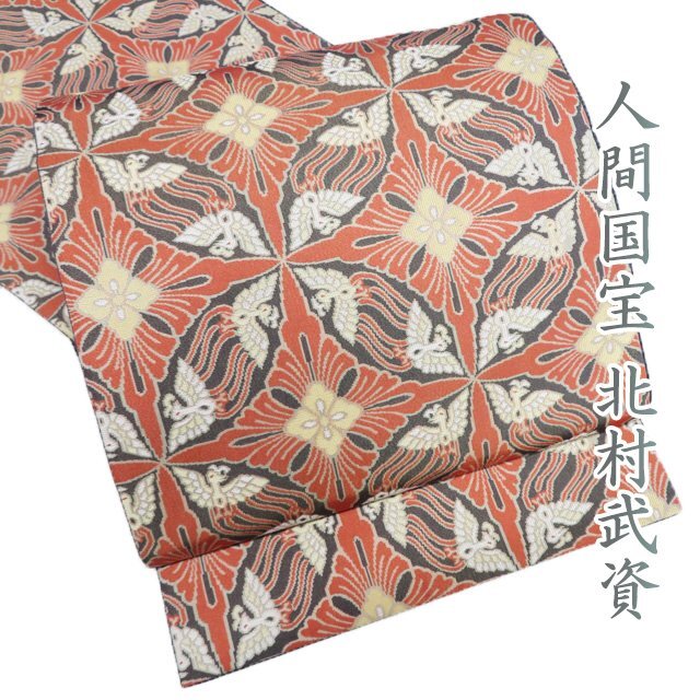 > 特選 袋帯 未使用 正絹 カジュアル 仕立て上がり 六通 人間国宝 北村武資 鳥襷七宝文 金通し 肉桂色 樺茶色 多色 きもの北條 A1196-12