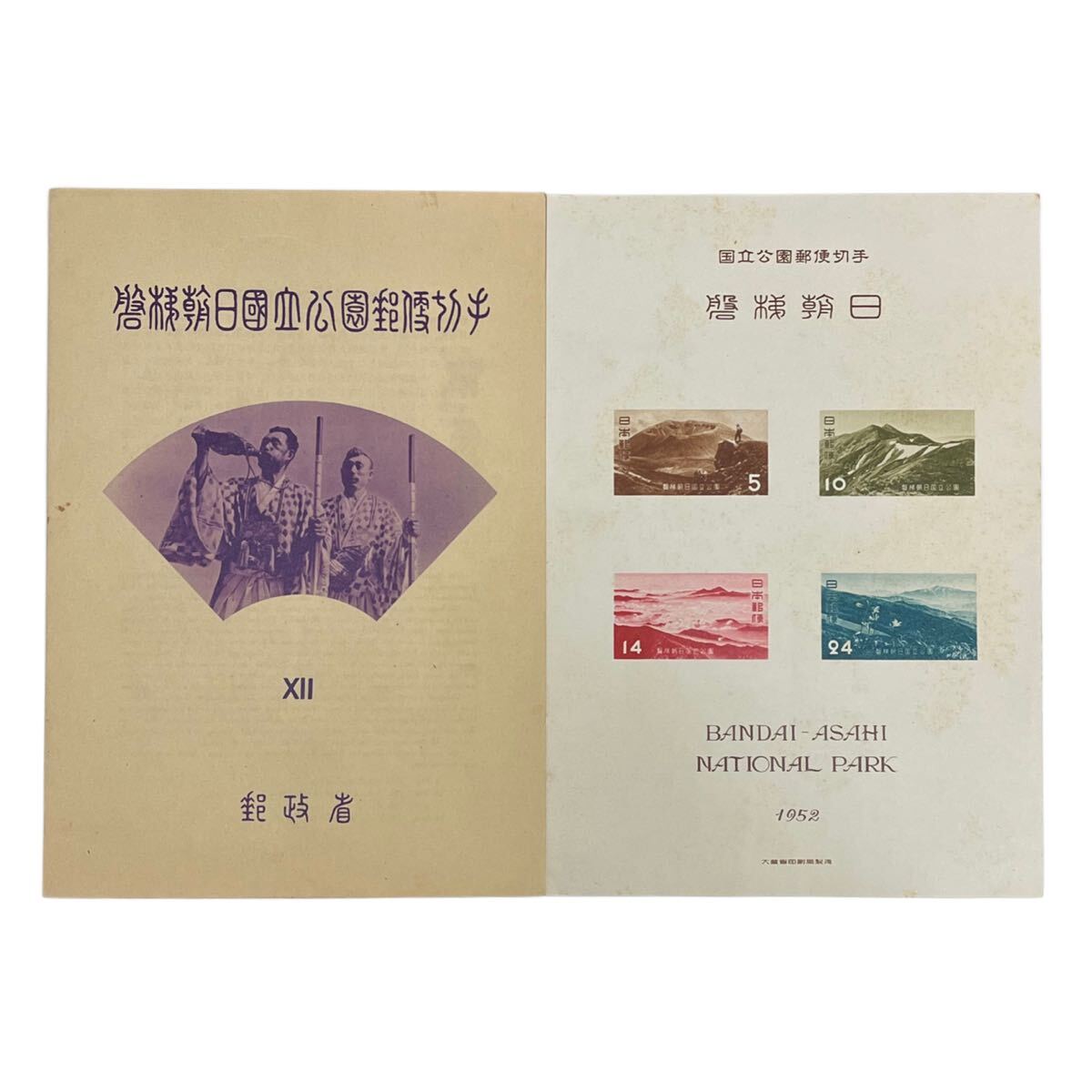 - 磐梯朝日国立公園 日本切手 小型シート タトウ付 1952年発行