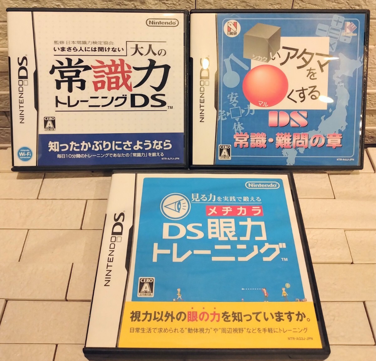 > 匿名送料込み NintendoDS シカクいアタマをマルくする。 DS眼力トレーニング 大人の常識力トレーニング 動体視力 セット