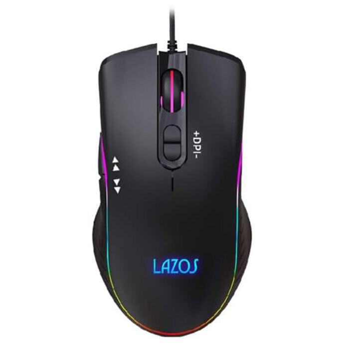 - RGB有線ゲーミングマウス 7ボタン ブラック PC パソコン ゲーム用 LAZOS(ラソス)L-MSG7-B/3249x1台/送料無料