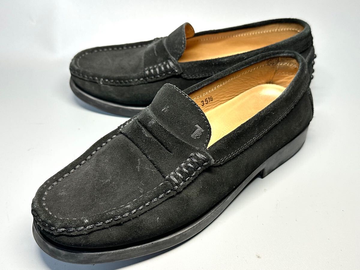 > 【即決】TOD’S レディース 35.5 22.5cm程度 ドライビングシューズ トッズ 黒 コインローファー 本革 スリッポン スエード くつ