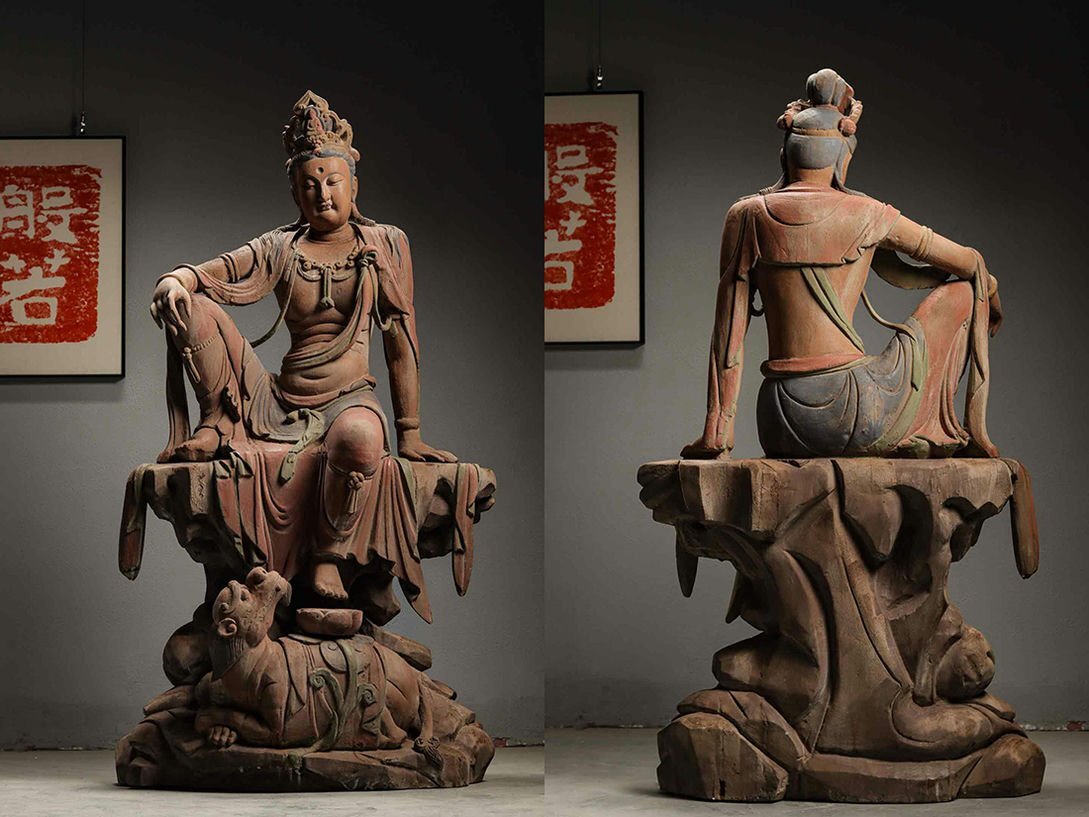 > ■観心・時代旧蔵■C8018明時代 楠木木彫彩絵 自在観音 細工彫刻★仏教古美術★仏像★細密細工★廃寺旧蔵★廃寺買出品