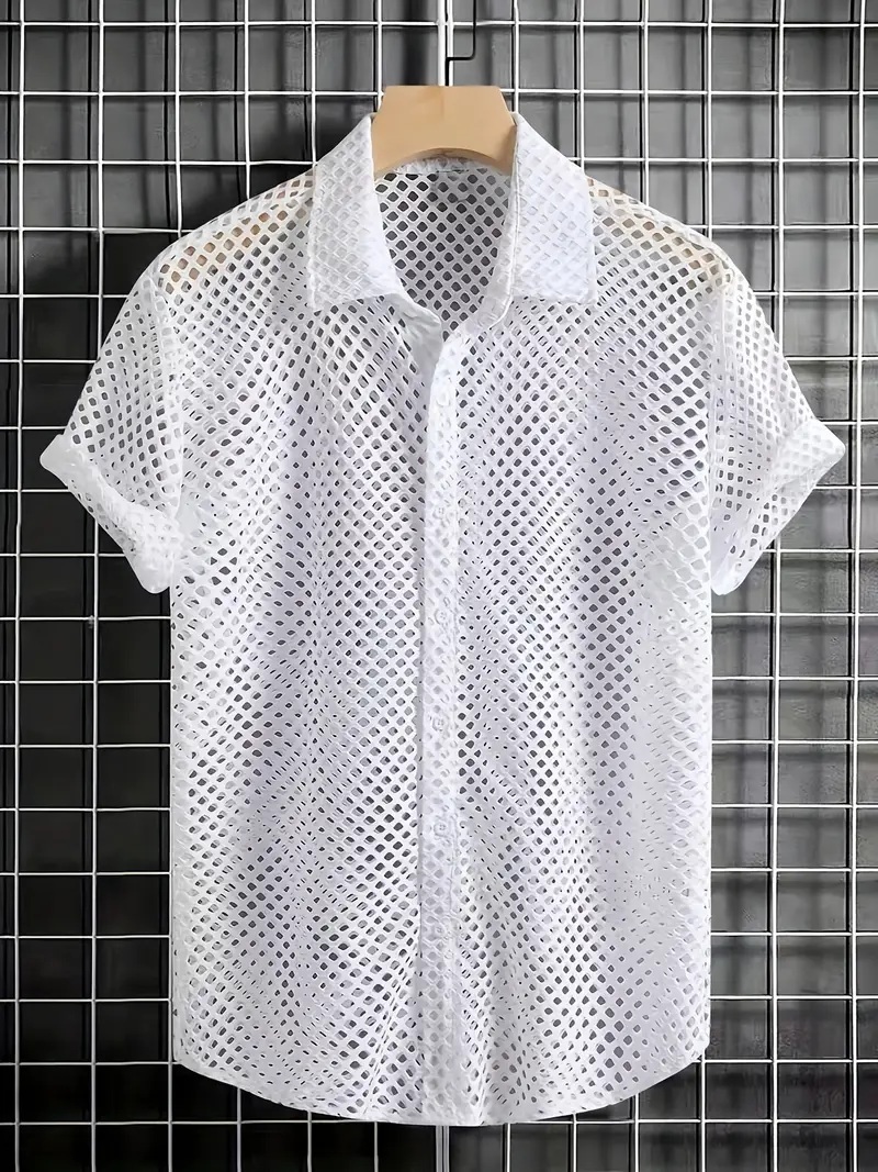 - 夏に最適涼しいし重ね着もオシャレシースルー男女兼用半袖ボタンシャツ夏のビーチパーティーから普段着迄快適ですしオススメ人気です