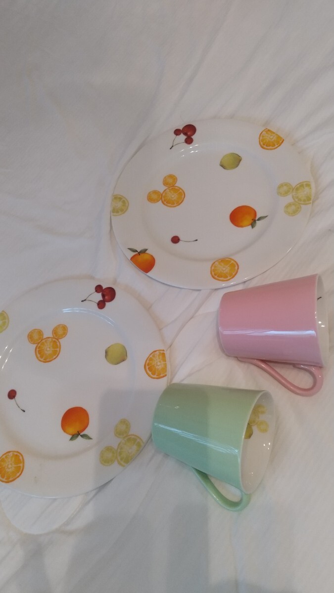 - ディズニー Disny Storeで購入 フルーツ柄ミッキー お皿+マグカップ ペアセット