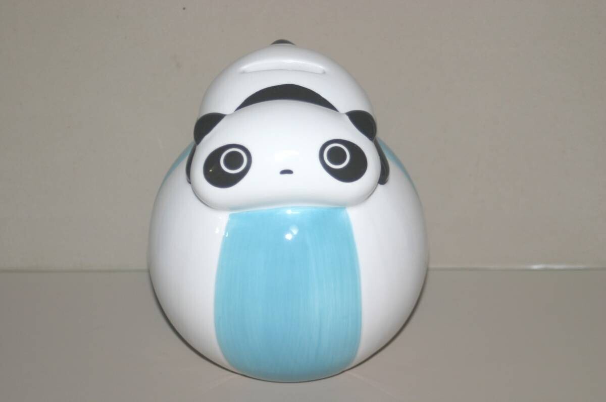 - San-X たれぱんだ とうきばんくPART2 青と白のボールに乗ったたれぱんだ 玉乗り 陶器製 貯金箱 約12cm×12cm×12cm フィギュアバンク
